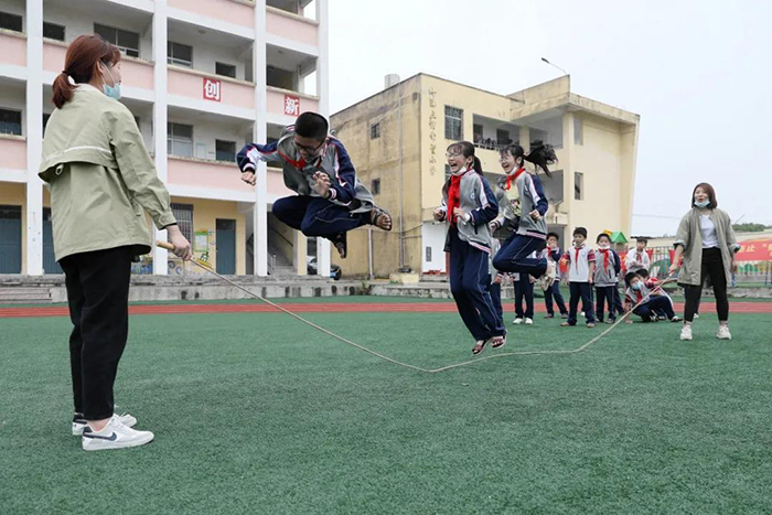 坪洋小学的孩子们在塑胶操场上锻炼嬉戏