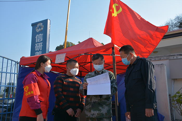 方胜雄(右二)在常太镇渡里村督查返乡人员排查管控落实情况。林朱平/摄